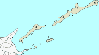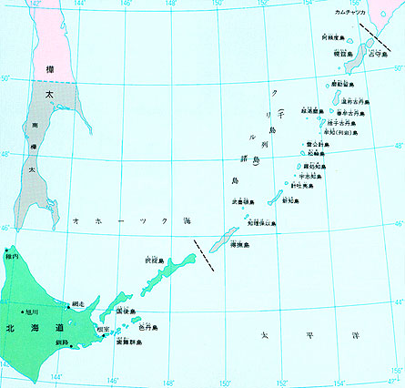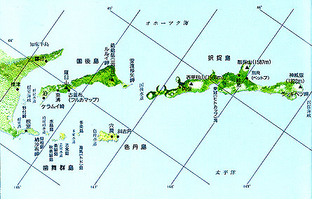 国後島(くなしりとう)、択捉島(えとろふとう)、得撫島(うるっぷとう)、