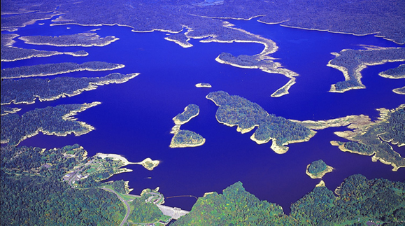 人造湖としては日本一の広さを誇ります。 人造湖とは思えないほど、周囲を緑の自然につつまれ、