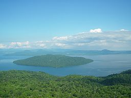 湖の中央には、淡水に浮かぶものとしては日本最大の中島があります。
