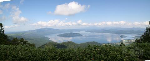は、 眼下に、中島が浮かぶ屈斜路湖の全貌、その向こうに