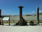 上陸した場所(現乙部漁港内)に碑が建っている。