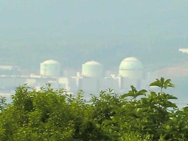 (写真は、岩内から見た泊村原発3基と岩内郷土資料館)