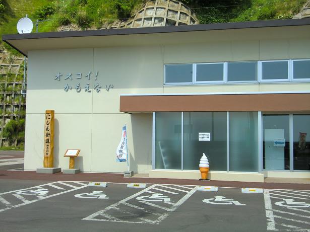 (写真は道の駅オスコイ!かもえない。平成16年9月の台風18号の高波の被害を受け、長らく閉鎖していたが、解体と建て替えで平成22年4月24日から営業を再開した)