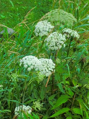 他の3種に比べて、本種は中央部が盛り上がったような花序を持つのが特徴。