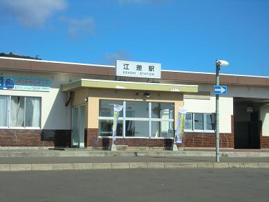 写真は、終着「江差駅」。江差線の途中「神明駅」