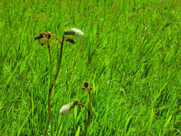 バラ科 ワレモコウ属 多年草。(ベニヤ原生花園にて撮影) 北海道・関東地方以北の本州、樺太に分布するが、中国地方などにも隔離分布している。地下に太い根茎があり、8月から10月にかけ、高さ1mほどの茎を出して花を付ける。萼片は4枚で白色であり、これが花の色となっている。雄しべは4本で長く、黒い葯が目立つ。葉は11~15の小葉からなり、小葉の幅は狭いく、三角形の鋸歯がある。