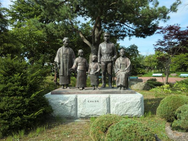 この一体は明治22年屯田兵が開拓に入ったところで、道の駅の隣に銅像が建っています。