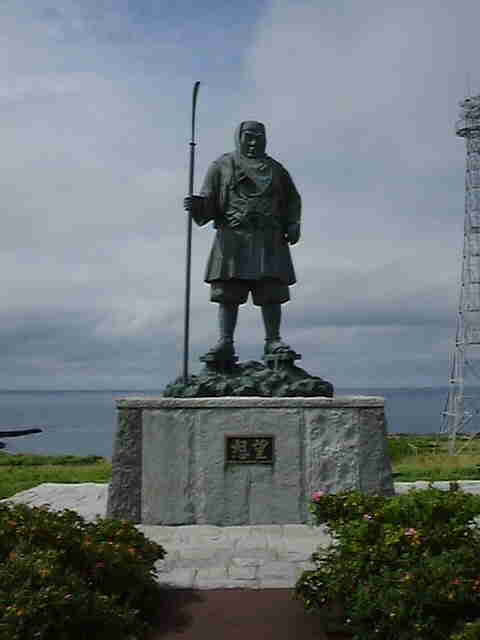 義経一行は、青森から北海道の白神(福島町)に渡り、 西海岸を北上して羊蹄山麓を廻り平取に入ったそうです。 平取に住むアイヌの人たちを外夷から守ったことから "ハンガンカムイ"と尊称されていたということです。 その後は、新しく部下に加わった若者や藤原氏の残党とともに 大陸に渡ったとも伝えられています。